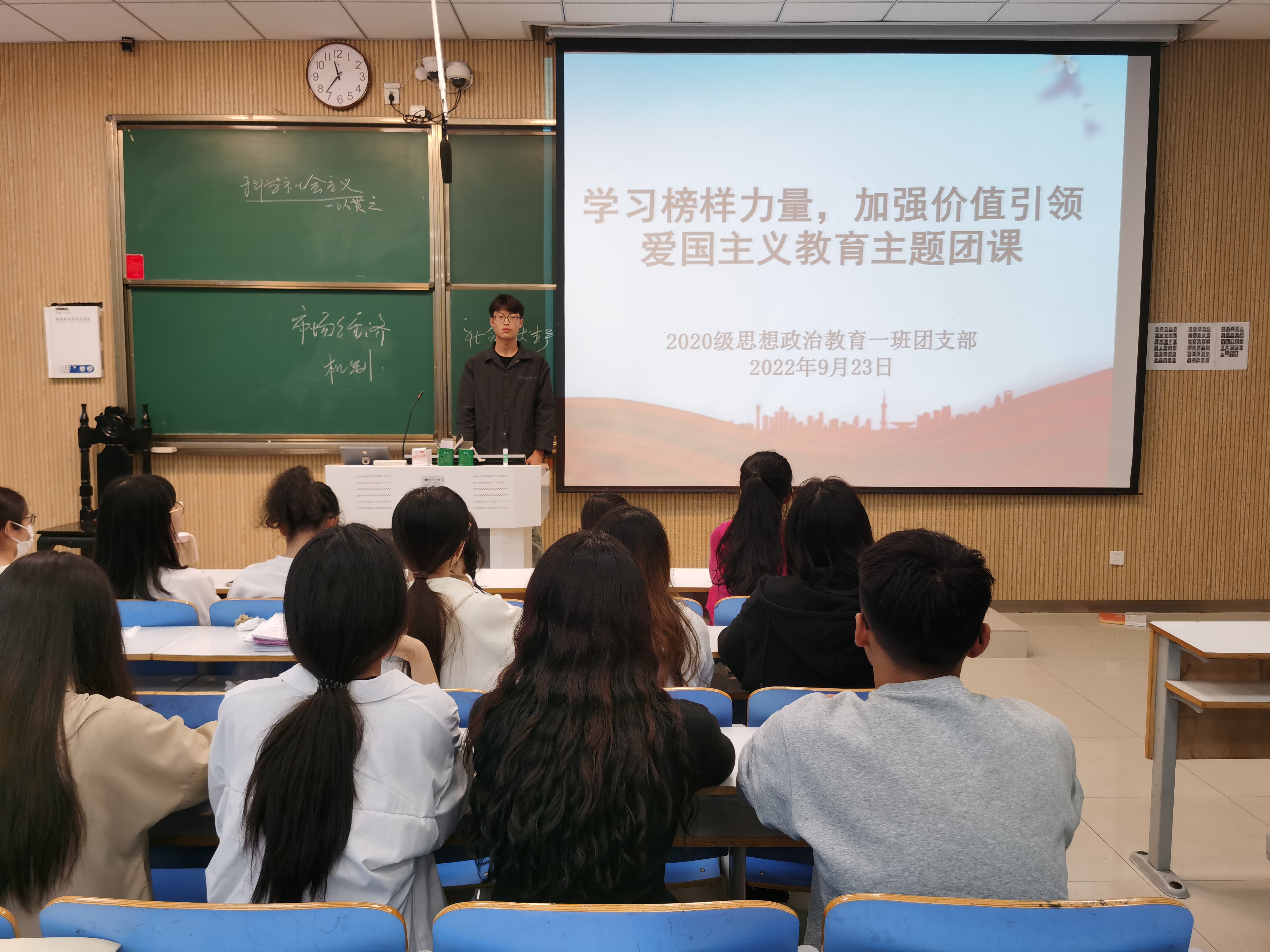 为加强团支部的思想文化建设,9月23日上午,金年会jinnianhuicom2020级思想政治教育一班团支部在社科楼515教室召开“学习榜样力量,加强价值引领”爱国主义教育主题团课。2020级思想政治教育一班团支部全体成员参加此次会议。会议由团支部副书记白帅豪主持。