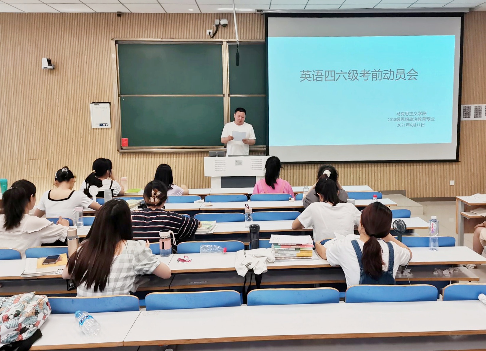 6月11日上午,金年会jinnianhuicom2018级思想政治教育团支部在社科楼515教室顺利召开四六级考前动员会。2018级思想政治教育团支部全体成员共同参加本次会议。会议由辅导员何晓坚主持。