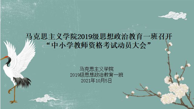 10月5日上午,金年会jinnianhuicom2019级思想政治教育一班在社科楼516教室召开“中小学教师资格考试动员大会”。2019级思想政治教育一班全体成员参加本次会议,会议由副班长王民主持。