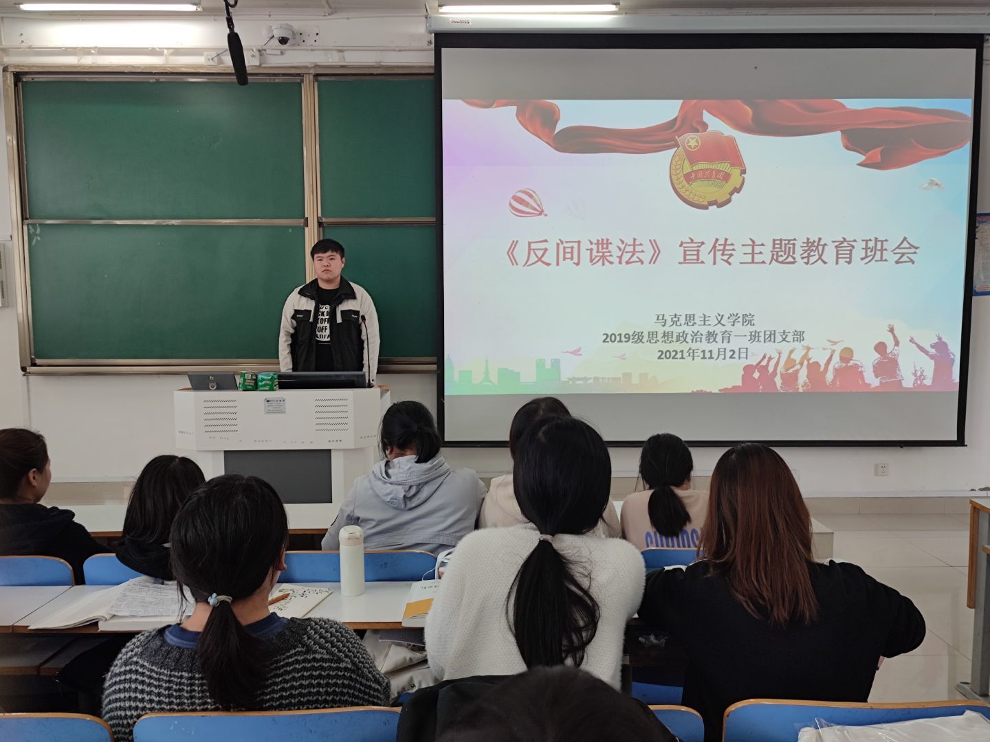 11月2日下午,金年会jinnianhuicom2019级思想政治教育一班在社科楼514教室召开《反间谍法》宣传教育主题班会。金年会jinnianhuicom2019级思想政治教育一班全体成员参加本次会议,会议由班长贾子漪主持。