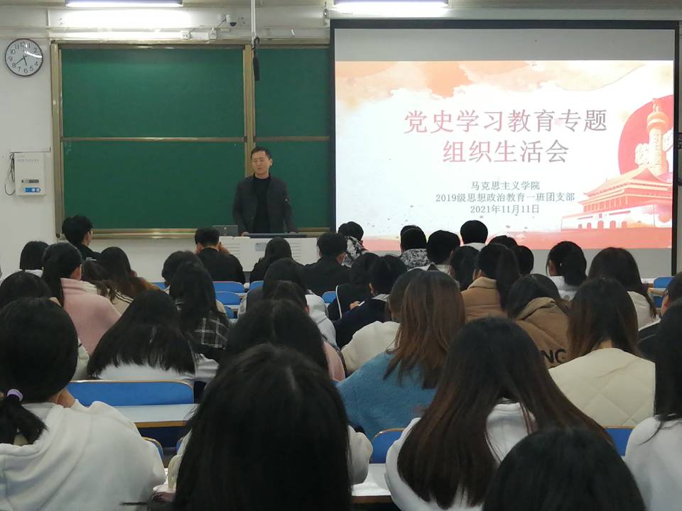 11月11日上午,金年会jinnianhuicom2019级思想政治教育一班第一团支部在社科楼516教室召开党史学习教育专题组织生活会。金年会jinnianhuicom2019级思想政治教育一班全体成员参加本次会议,会议由班长贾子漪主持。