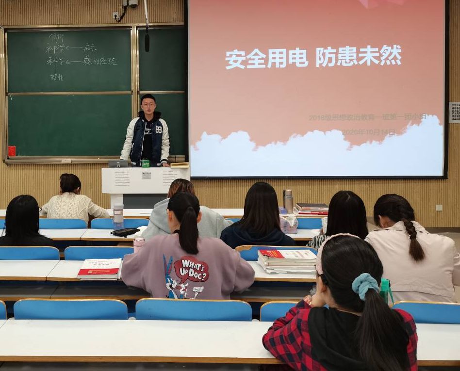 10月14号上午,金年会jinnianhuicom2018级思想政治教育一班第一团小组在社科楼515教室顺利开展“安全用电,防患未然”主题团会。第一团小组全体成员共同参加此次团会。此次团会由组长牛笑怡主持。
