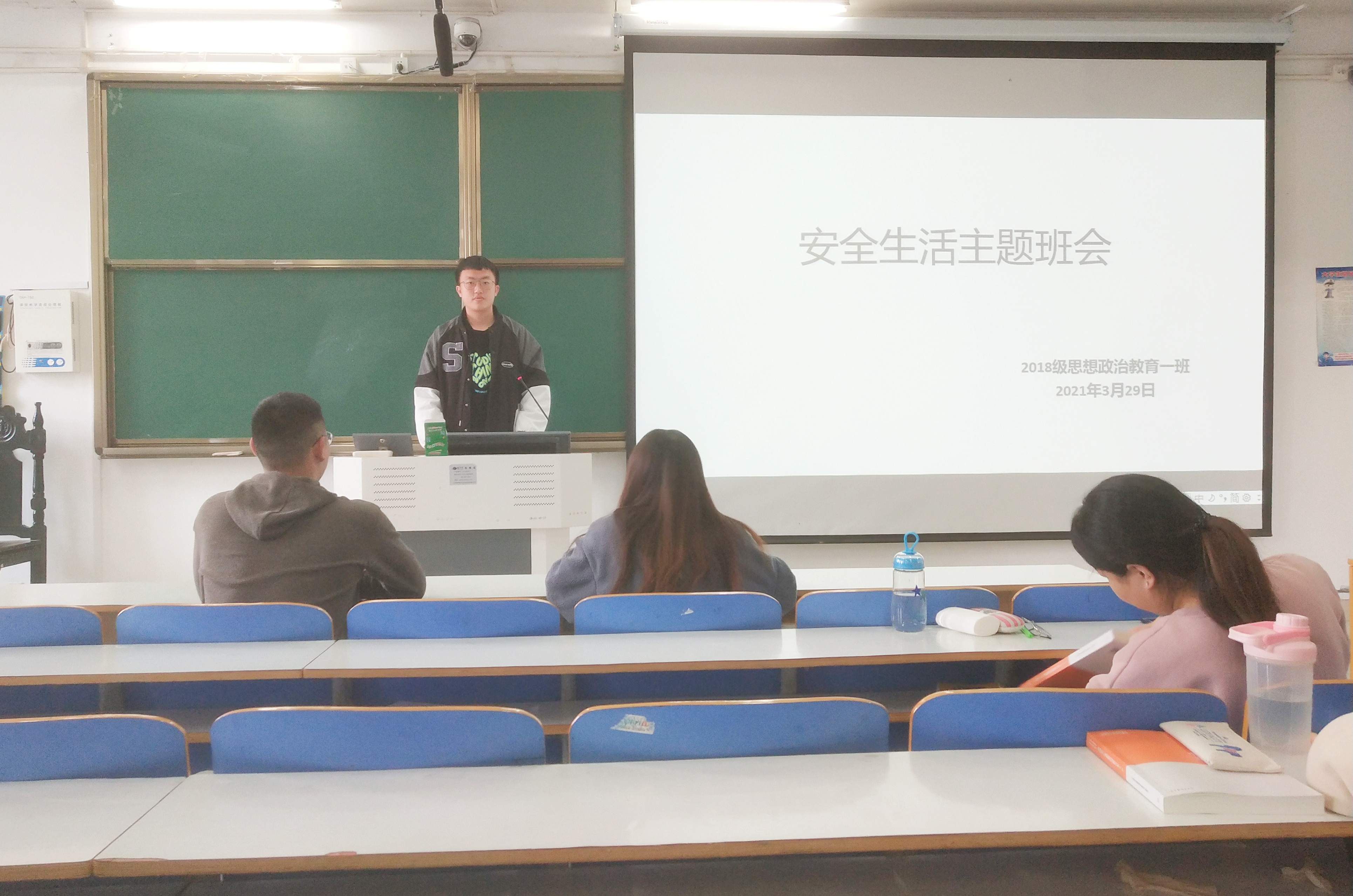 3月29日上午,金年会jinnianhuicom2018级思想政治教育一班在社科楼514教室顺利开展安全生活主题班会。2018级思想政治教育一班全体同学参加了本次班会。会议由班长邢子豪主持。