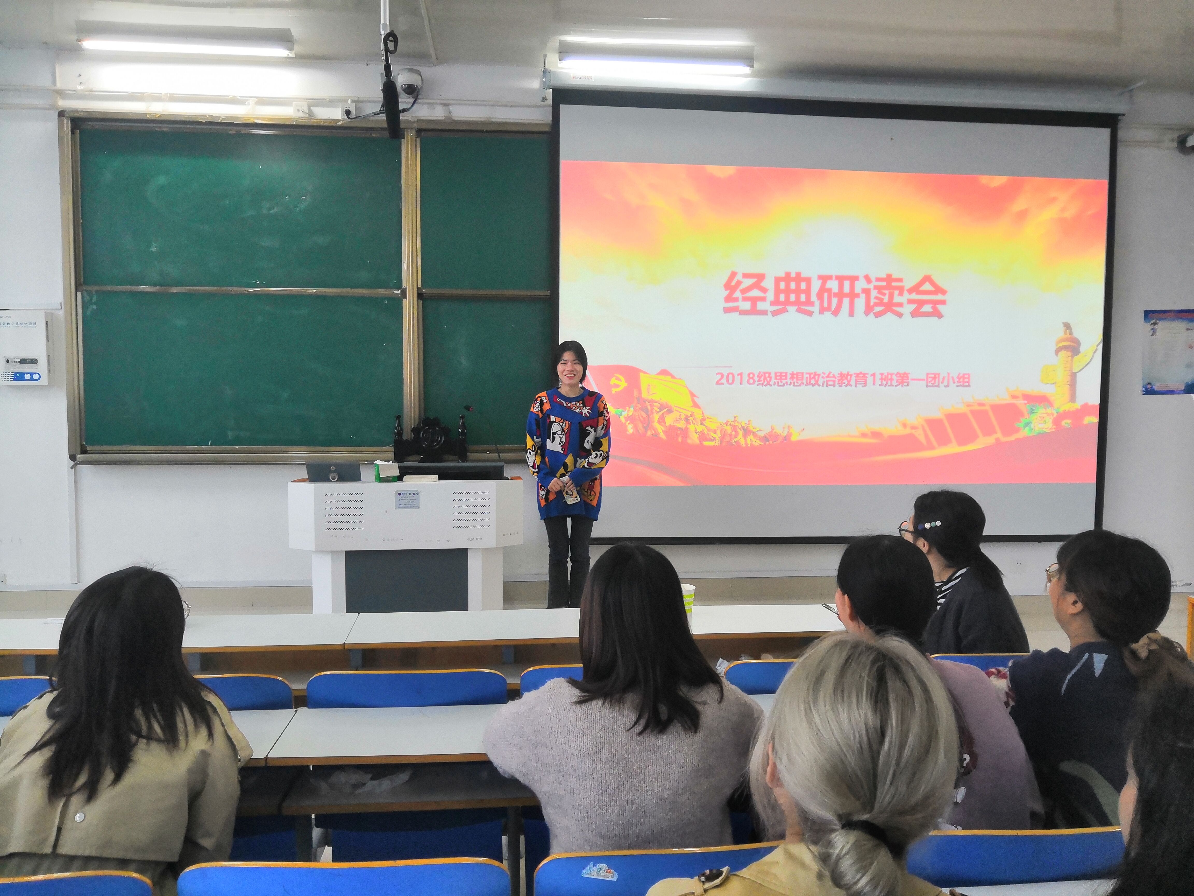 4月26日上午,金年会jinnianhuicom2018级思想政治教育一班第一团小组在社科楼514教室顺利开展“经典研读”主题团会。第一团小组全体成员共同参加此次团会。该团会由团小组成员刘婕主持。