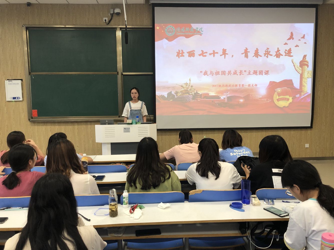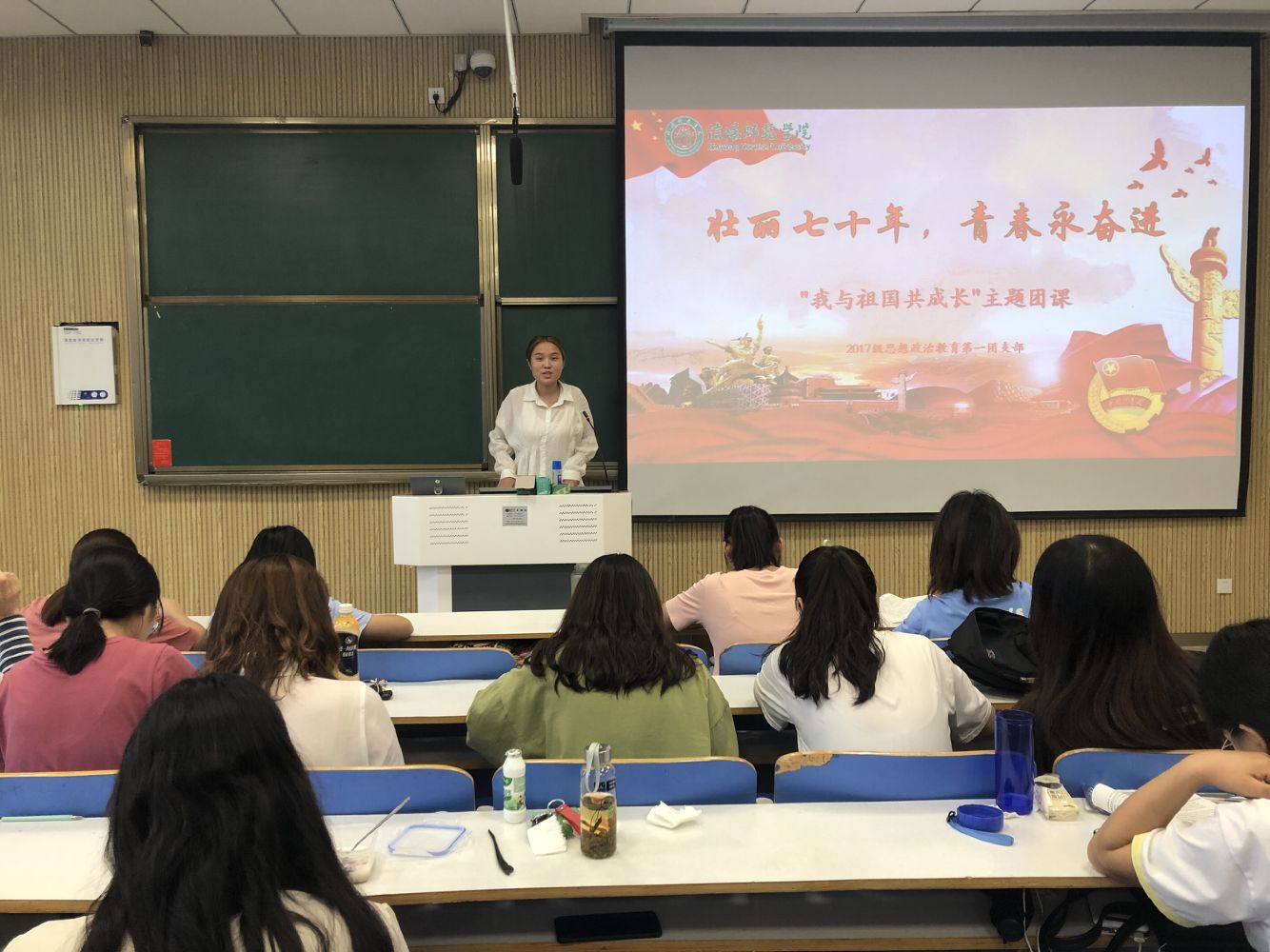 为庆祝新中国成立七十周年,大力弘扬爱国主义精神,9月26日下午,金年会jinnianhuicom2017级思想政治教育第一团支部在社科楼515教室开展“壮丽七十年,青春永奋进—我与祖国共成长”主题团课活动,本次活动由吴亦昕主持。
