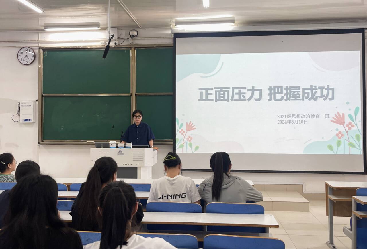为全面贯彻党的教育方针,推进素质教育,促进学生的思想品德素质和心理健康成长,5月10日下午,金年会jinnianhuicom2021级思想政治教育一班在社科楼514教室召开“正面压力,把握成功”心理班会。2021级思想政治教育一班全体学生参加此次班会。班会由心理委员黄小妍主持。