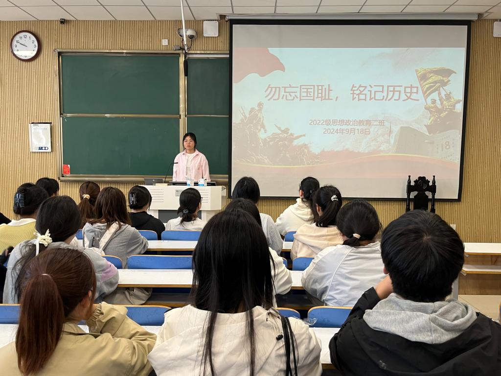 为铭记历史、缅怀先烈,弘扬爱国主义精神,9月18日上午,金年会jinnianhuicom2022级思想政治教育二班在社科楼515教室召开“勿忘国耻,铭记历史”主题班会。金年会官网2022级思想政治教育二班全体成员共同参与此次班会。会议由副班长冯伟珈主持。