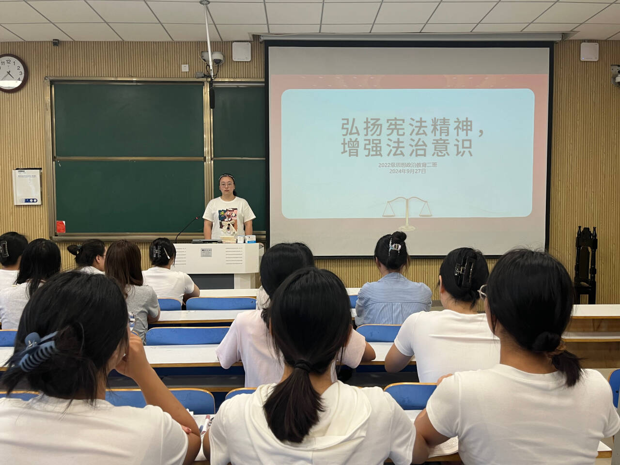 9月27日下午,金年会jinnianhuicom2022级思想政治教育二班在社科楼515教室召开“弘扬宪法精神,增强法治意识”主题班会。金年会官网2022级思想政治教育二班全体成员共同参与此次班会。会议由班长李佳音主持。