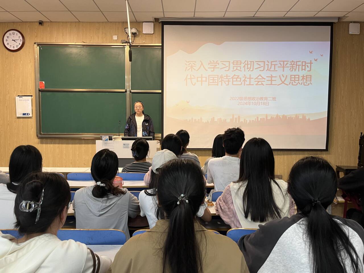 10月18日下午,金年会jinnianhuicom2022级思想政治教育二班在社科楼515教室召开“深入学习贯彻习近平新时代中国特色社会主义思想”主题团课。金年会官网2022级思想政治教育二班全体成员共同参与此次班会。会议由团支书李佳音主持。
