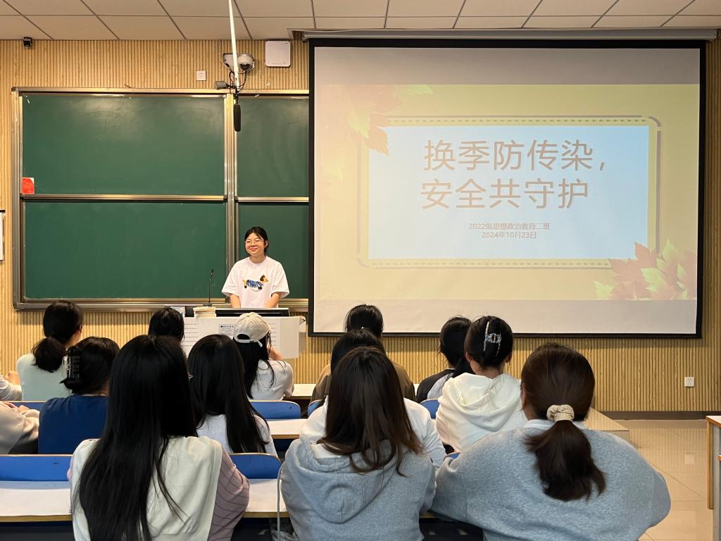 10月23日下午,金年会jinnianhuicom2022级思想政治教育二班在社科楼515教室召开“换季防传染,安全共守护”主题班会。金年会官网2022级思想政治教育二班全体成员共同参与此次班会。会议由副班长冯伟珈主持。