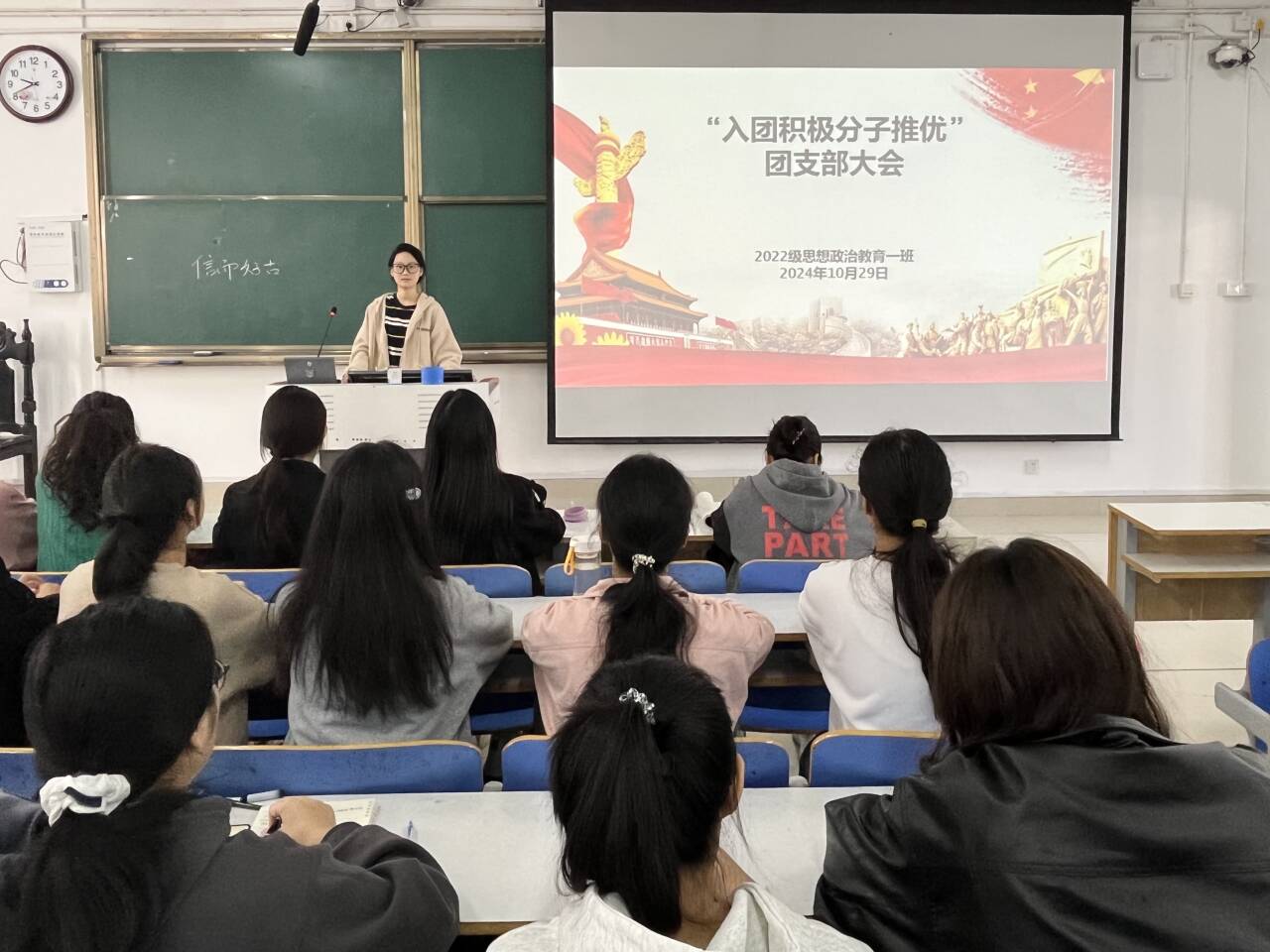 10月29日上午,金年会jinnianhuicom2022级思想政治教育一班在社科楼514教室召开“入团积极分子推优”团支部大会。金年会官网2022级思想政治教育一班全体同学共同参与本次会议,会议由团支书李佳茹主持。