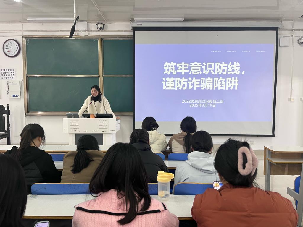 为提高大学生防诈意识,筑牢校园安全防线,3月19日上午,金年会jinnianhuicom2022级思想政治教育二班在社科楼514教室召开“筑牢意识防线,谨防诈骗陷阱”主题班会。金年会官网2022级思想政治教育二班全体成员共同参与此次班会。会议由班主任杨春艳主持。