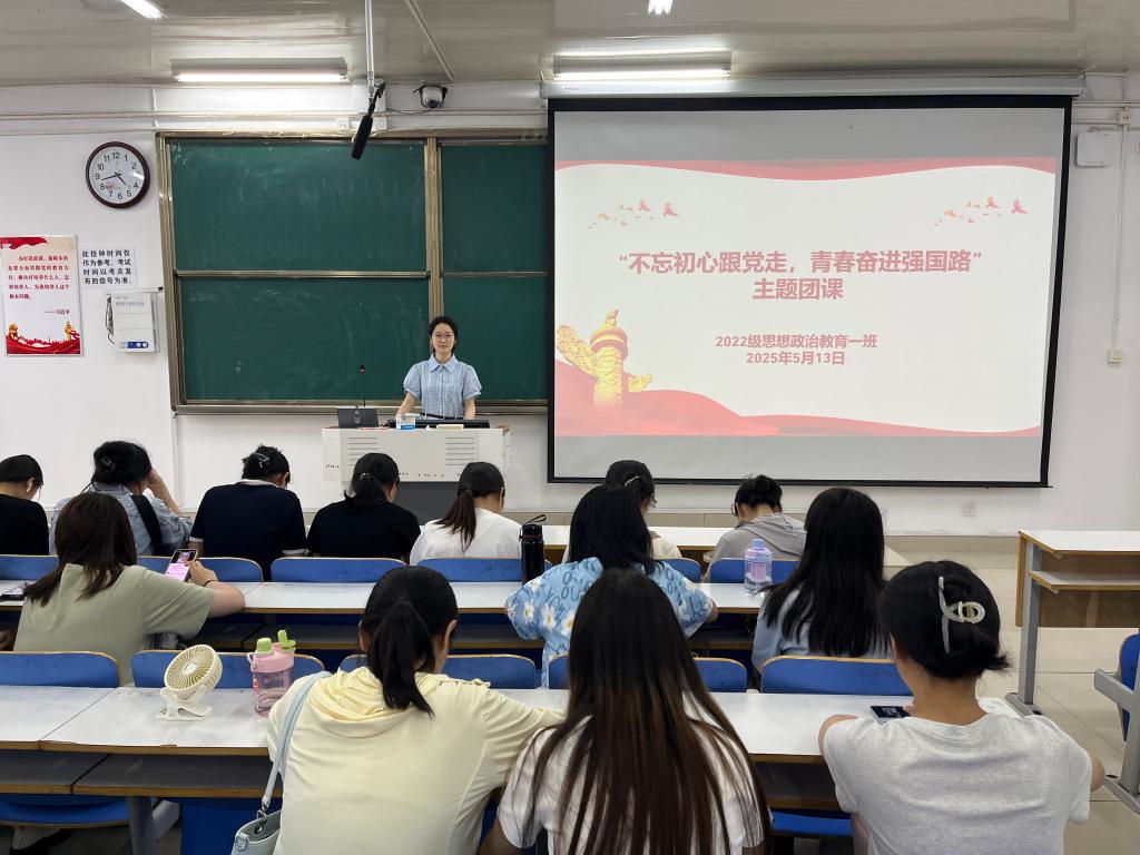 为增强同学们的民族责任感和使命担当,5月13日下午,金年会jinnianhuicom2022级思想政治教育一班在社科楼514教室开展“不忘初心跟党走,青春奋进强国路”主题团课,金年会官网2022级思想政治教育一班全体同学共同参与本次团课,团课由团支书李佳茹主持。