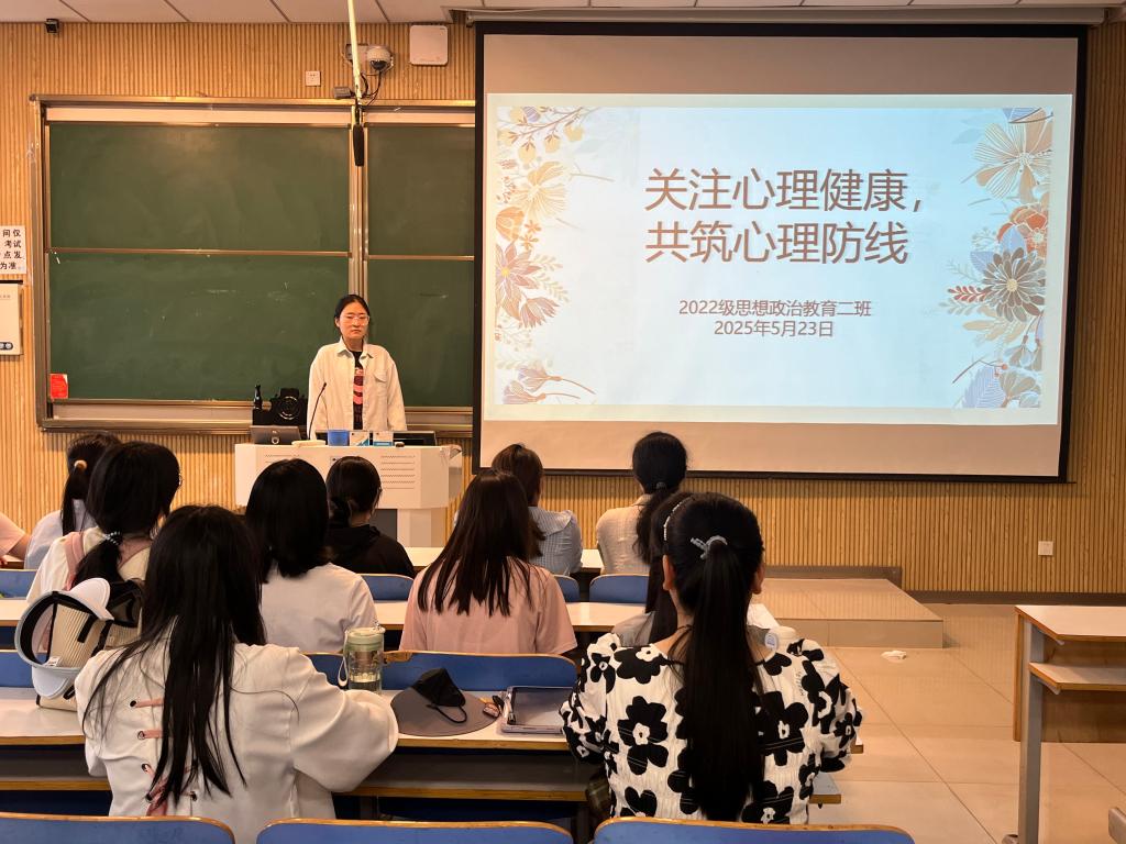 5月23日上午,金年会jinnianhuicom2022级思想政治教育二班在社科楼515教室召开“关注心理健康,共筑心理防线”主题班会。金年会官网2022级思想政治教育二班全体成员参与此次班会,会议由心理委员张嘉芮主持。