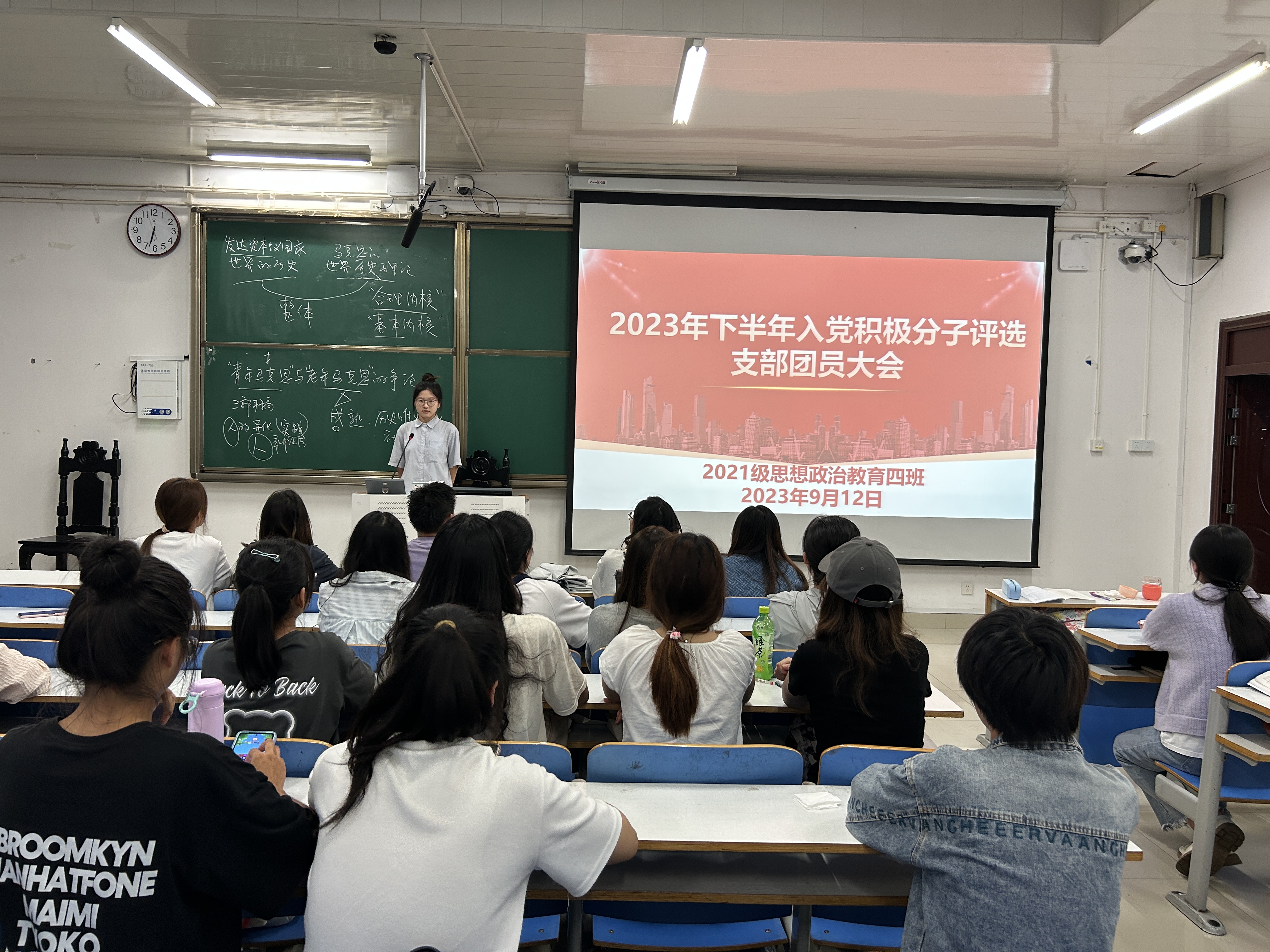 9月12日下午,金年会jinnianhuicom2021级思想政治教育四班在社科楼515教室召开入党积极分子评选支部大会。2021级思想政治教育四班全体团员共同参会。会议由团支书刘珂含主持。