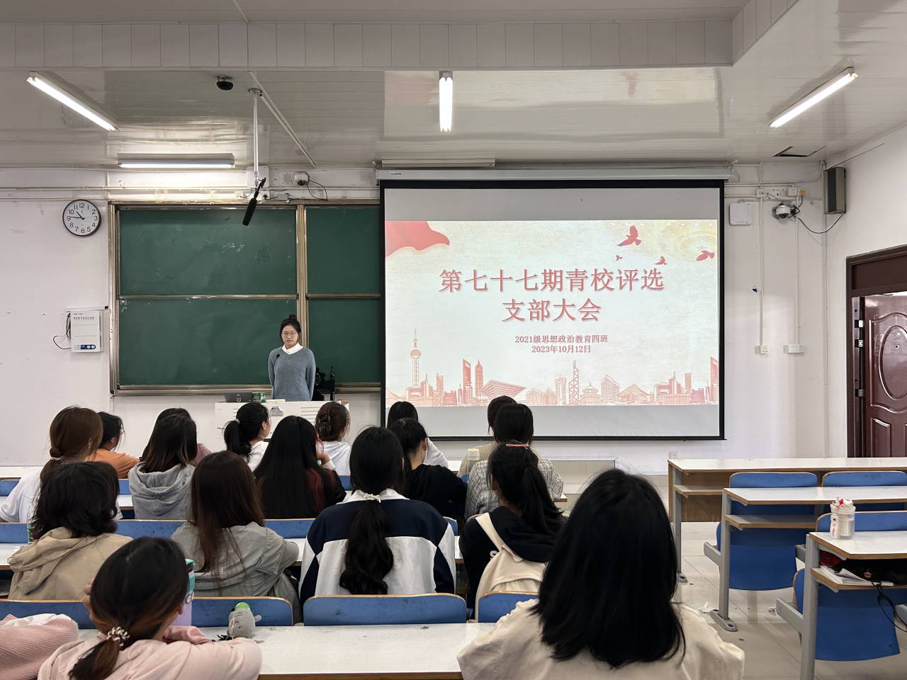 10月12日下午,金年会jinnianhuicom2021级思想政治教育四班在社科楼515教室开展第77期“青校”评选团支部大会。金年会jinnianhuicom2021级思想政治教育四班全体团员共同参与本次会议。会议由团支书刘珂含主持。