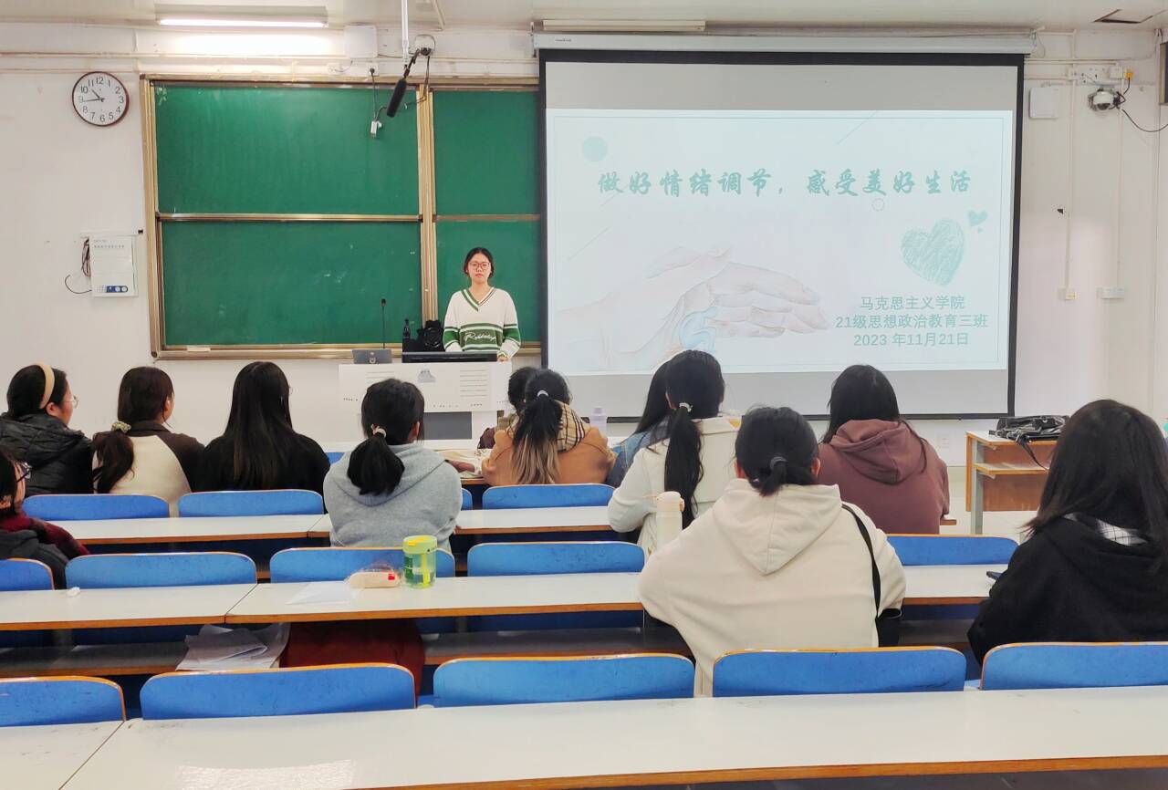 11月21日下午,金年会jinnianhuicom2021级思想政治教育三班在社科楼514教室举办“做好情绪调节,感受美好生活”主题团课。2021级思想政治教育三班全体成员参加了此次会议。会议由心理委员许竞文主持。