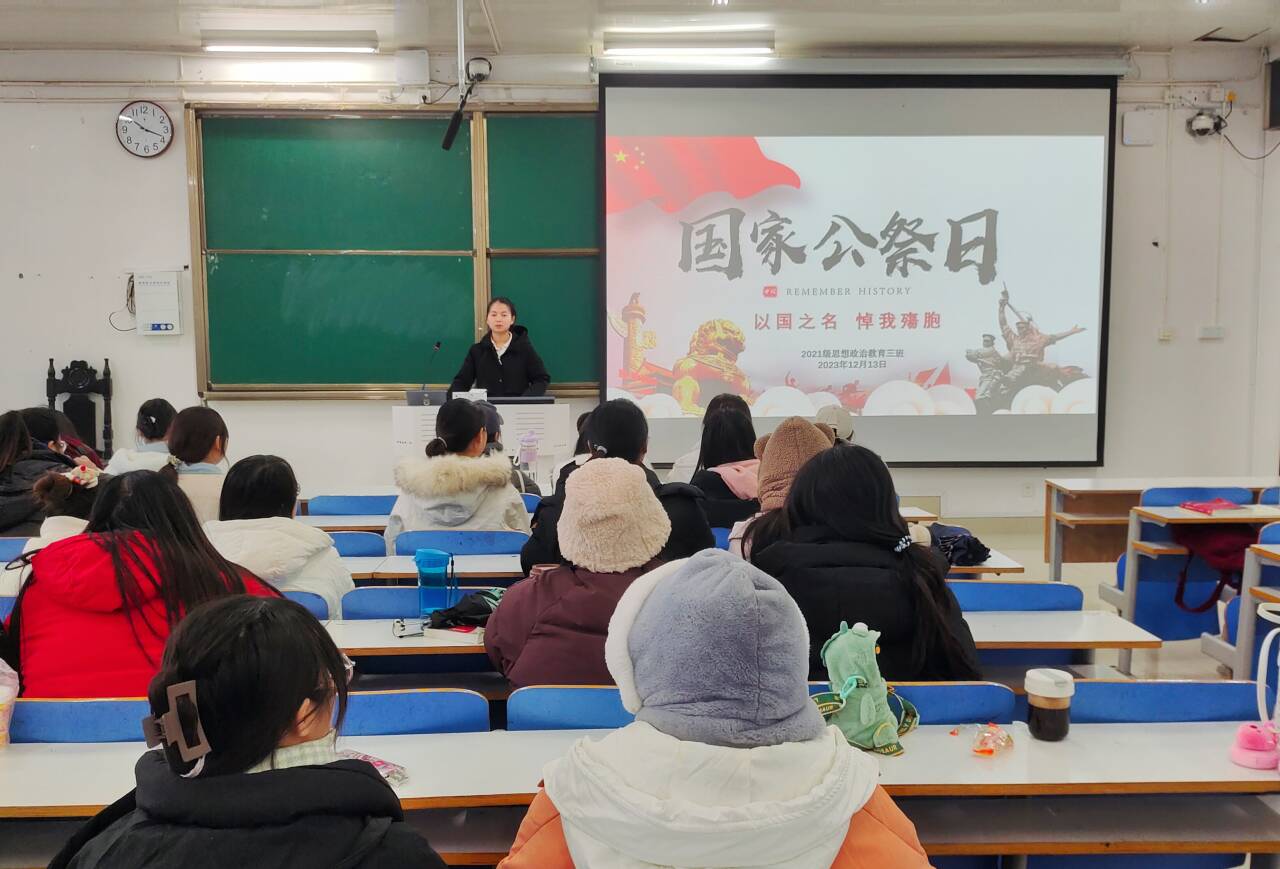 12月13日下午,金年会jinnianhuicom2021级思想政治教育三班在社科楼514召开“以国之名,悼我殇胞”主题班会。金年会jinnianhuicom2021级思想政治教育三班全体成员参与此次会议。会议由副班长易从漫主持。