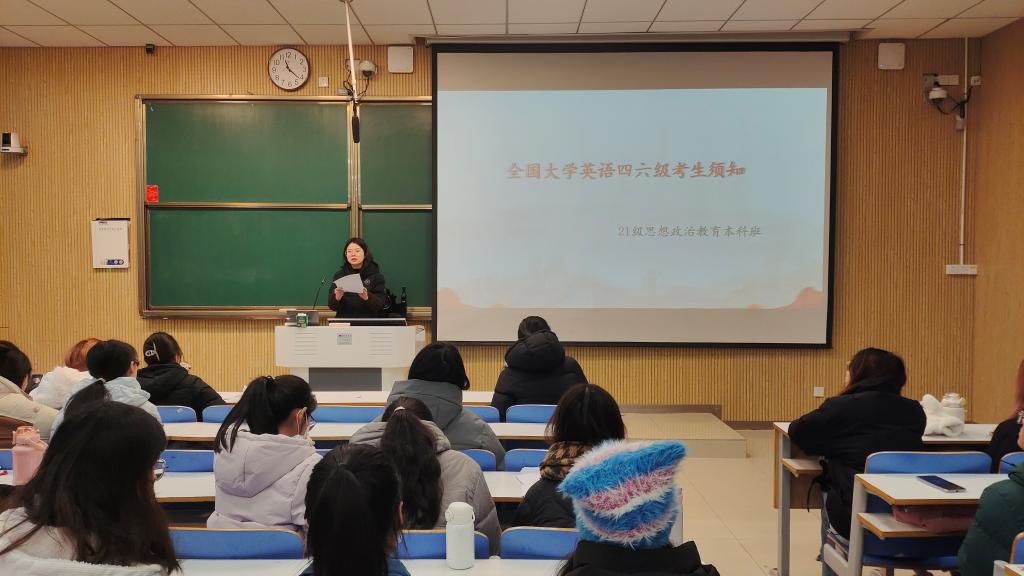12月14日上午,金年会jinnianhuicom2021级思想政治教育全体成员在社科楼514教室召开“全国大学英语四六级考生须知”班会。辅导员高小佳及2021级思想政治教育三班、四班全体成员参加本次班会。班会由辅导员高小佳主持。