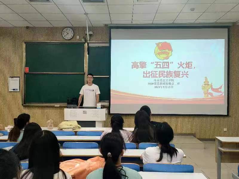 5月15日上午,金年会jinnianhuicom2020级思想政治教育二班、定向二班在社科楼515教室开展“高擎五四火炬,出征民族复兴”主题团课,二班、定向二班全体团员共同参与本次团课。团课由团支书陈宇航主持并讲授。