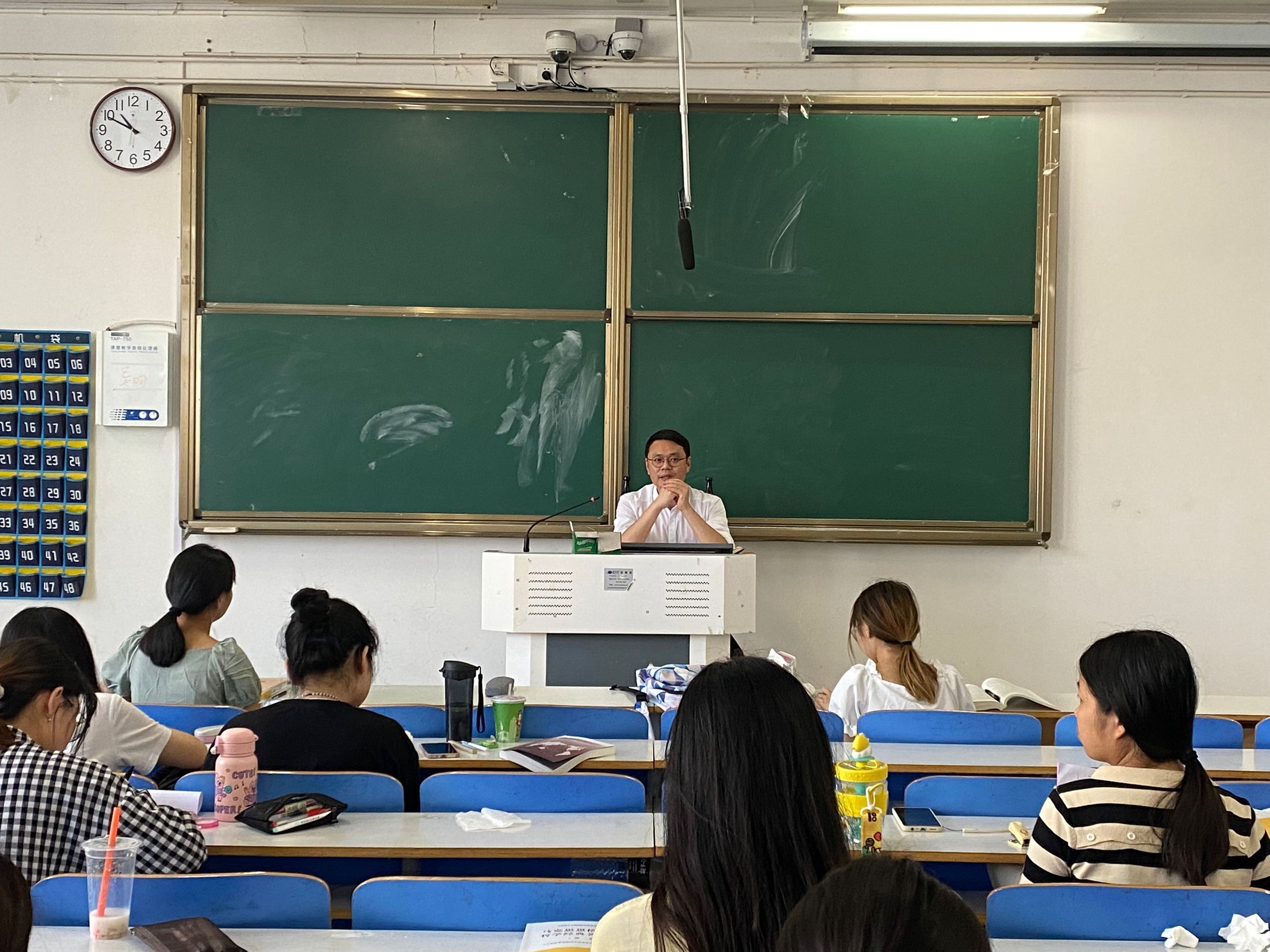 会议伊始,黄煌就期末考务安排、四六级考试时间和最新的放假时间予以通报。接着,他再次申明私自离校、违反防疫要求的严重后果,并告诫同学们一定要及时进行健康打卡,要严格遵守学校封闭式管理的规定。最后,黄煌强调,同学们应严于律己,诚信应考,不携带任何通信工具进入考场,不在网上发布考试信息等,并预祝同学们在即将到来的期末考试中取得良好的成绩。