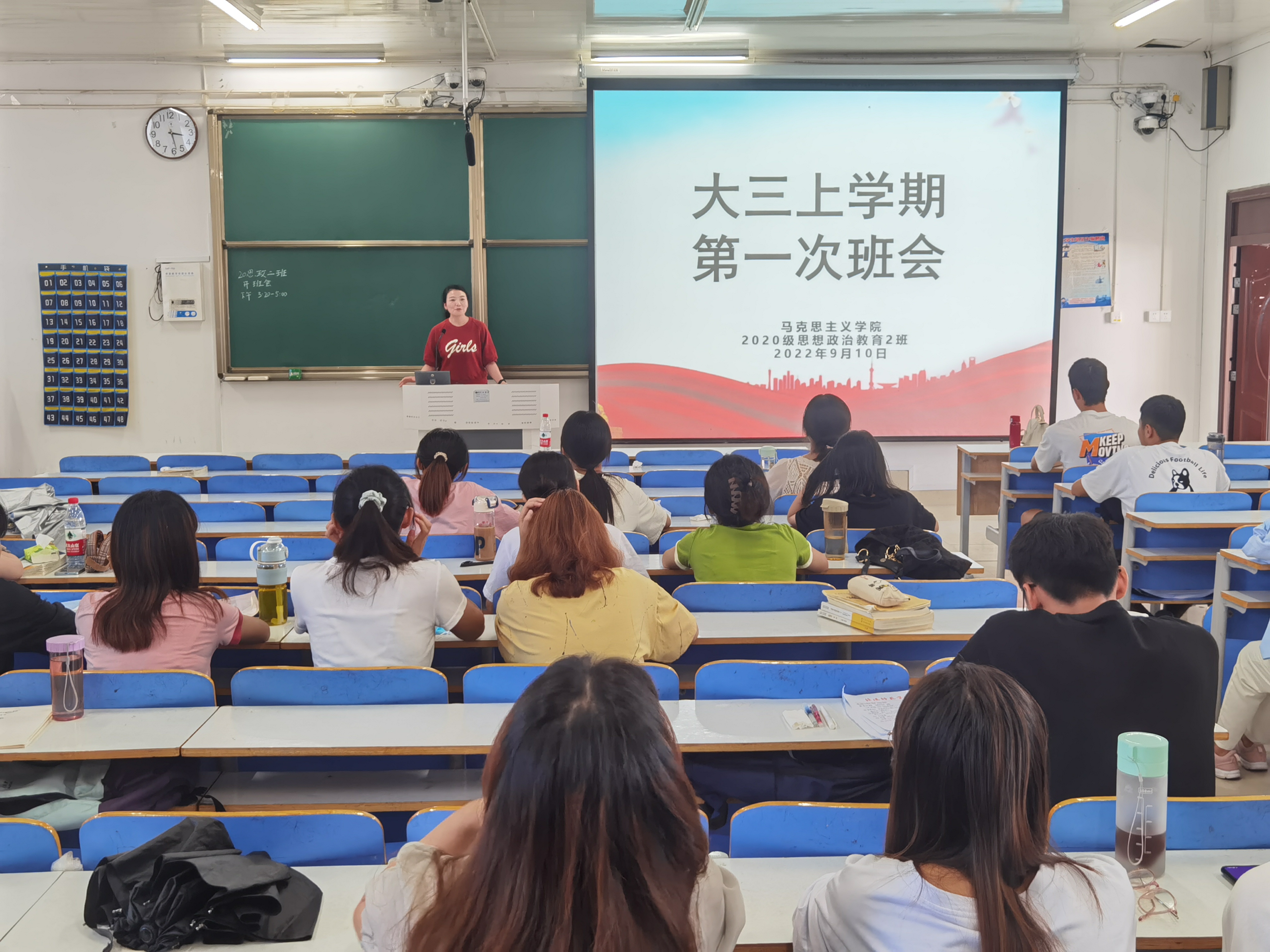 9月10日下午,金年会jinnianhuicom2020级思想政治教育二班、定向二班在社科楼514教室召开新学期第一次班会。二班、定向二班全体同学参与此次班会。辅导员陶青青出席并主持班会。