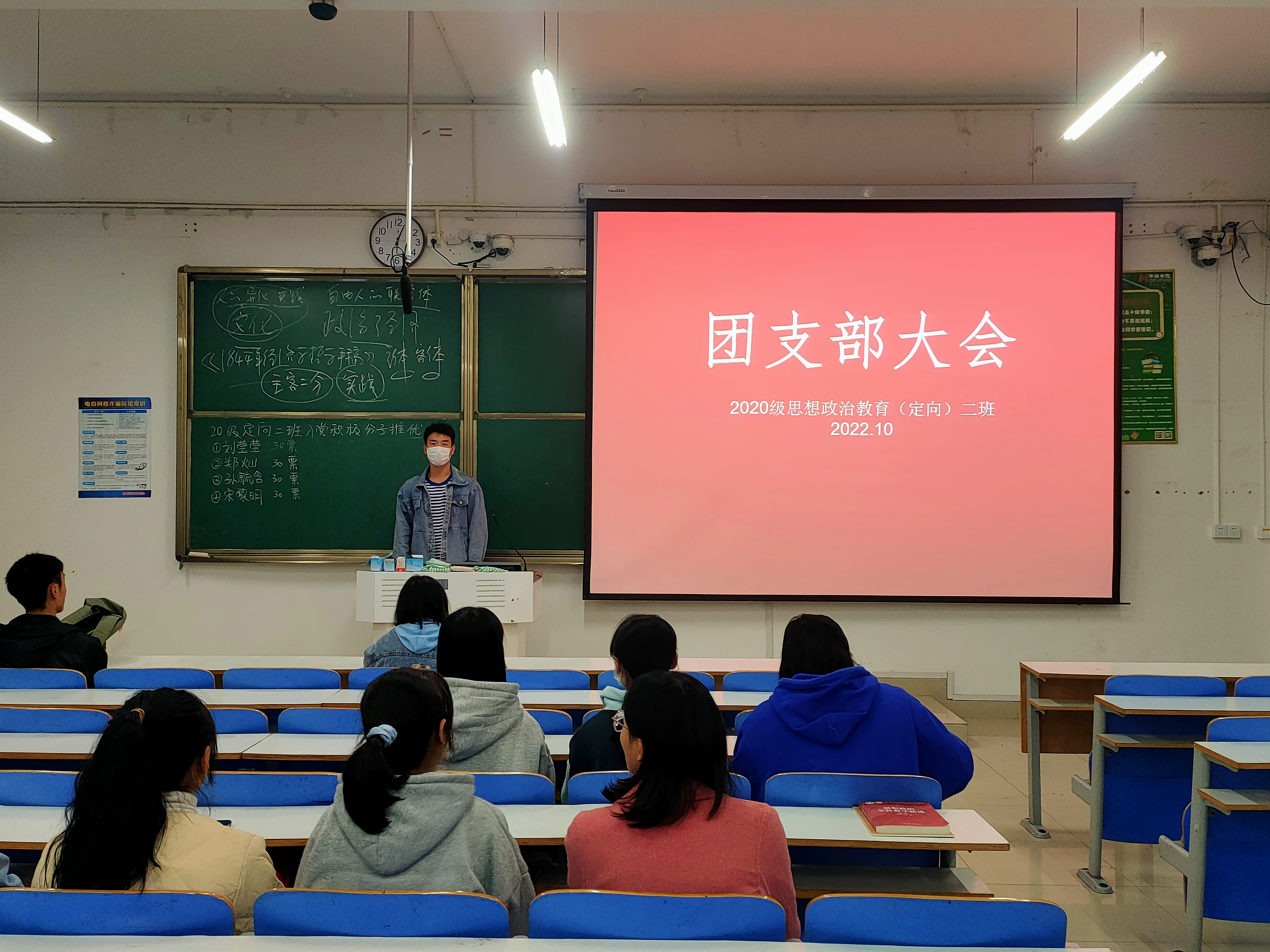 10月10日下午,金年会jinnianhuicom2020级思想政治教育定向二班团支部在社科楼324教室召开2022年下半年入党积极分子推优大会。我支部全体团员参与会议。大会由班长高红凯主持。