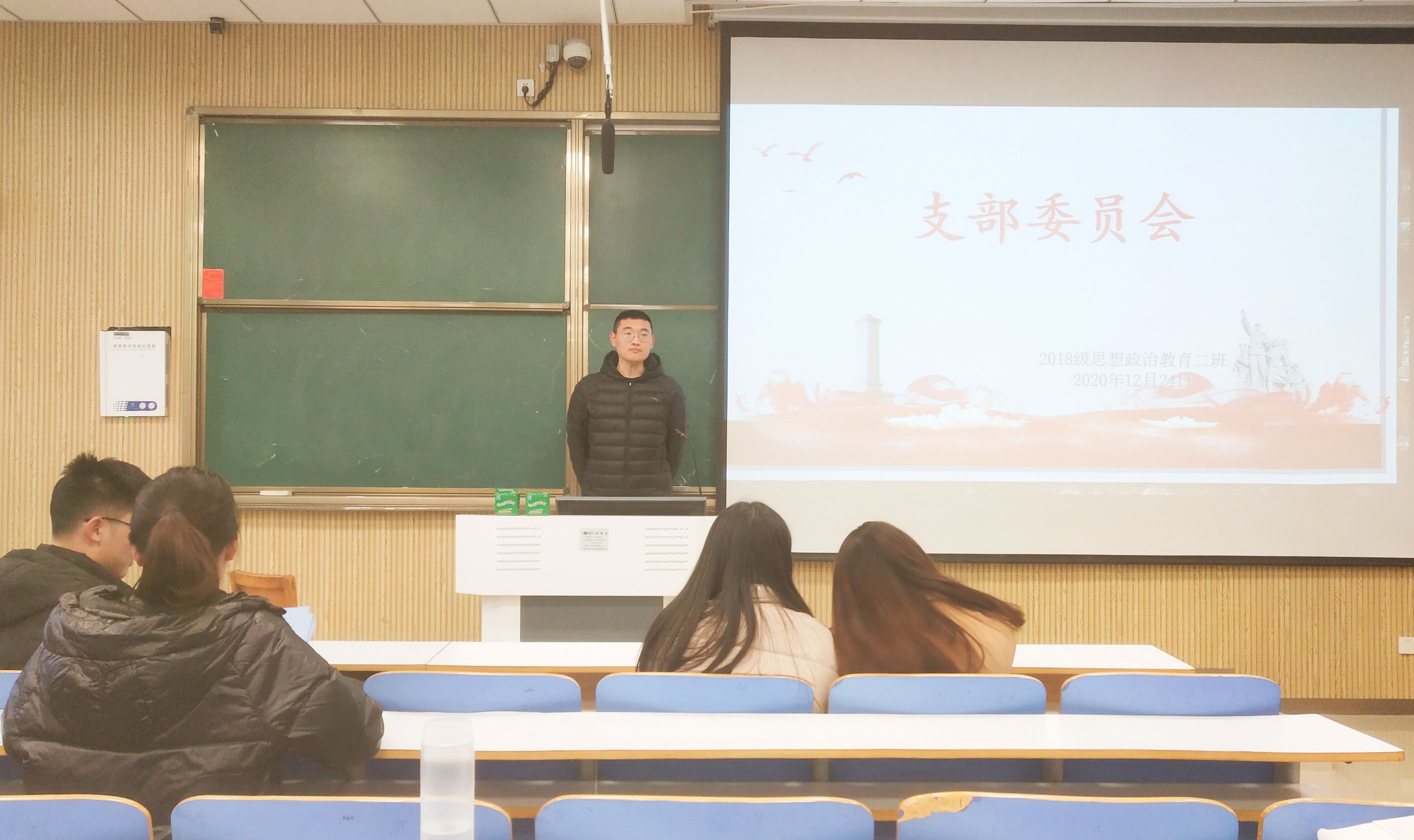 12月24日下午,金年会官网2018级思想政治教育第二团支部在社科楼515教室顺利开展支部委员会。会议由2018级思想政治教育第二团支部副书记杨康主持。