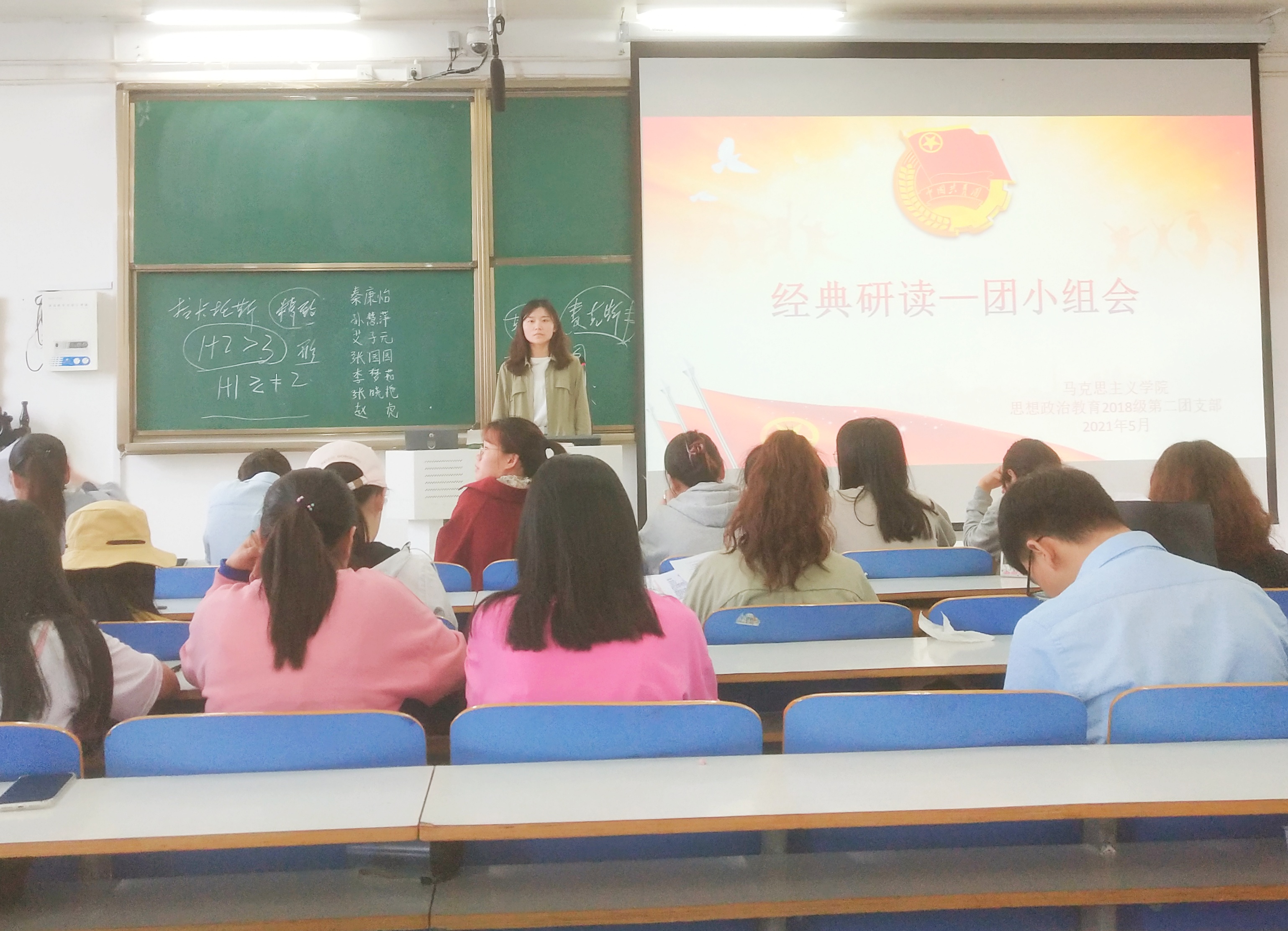 5月11日上午,金年会官网2018级思想政治教育第二团支部第一团小组在社科楼514教室顺利开展主题为“经典研读”团小组会。会议由团小组组长刘苏醒主持。