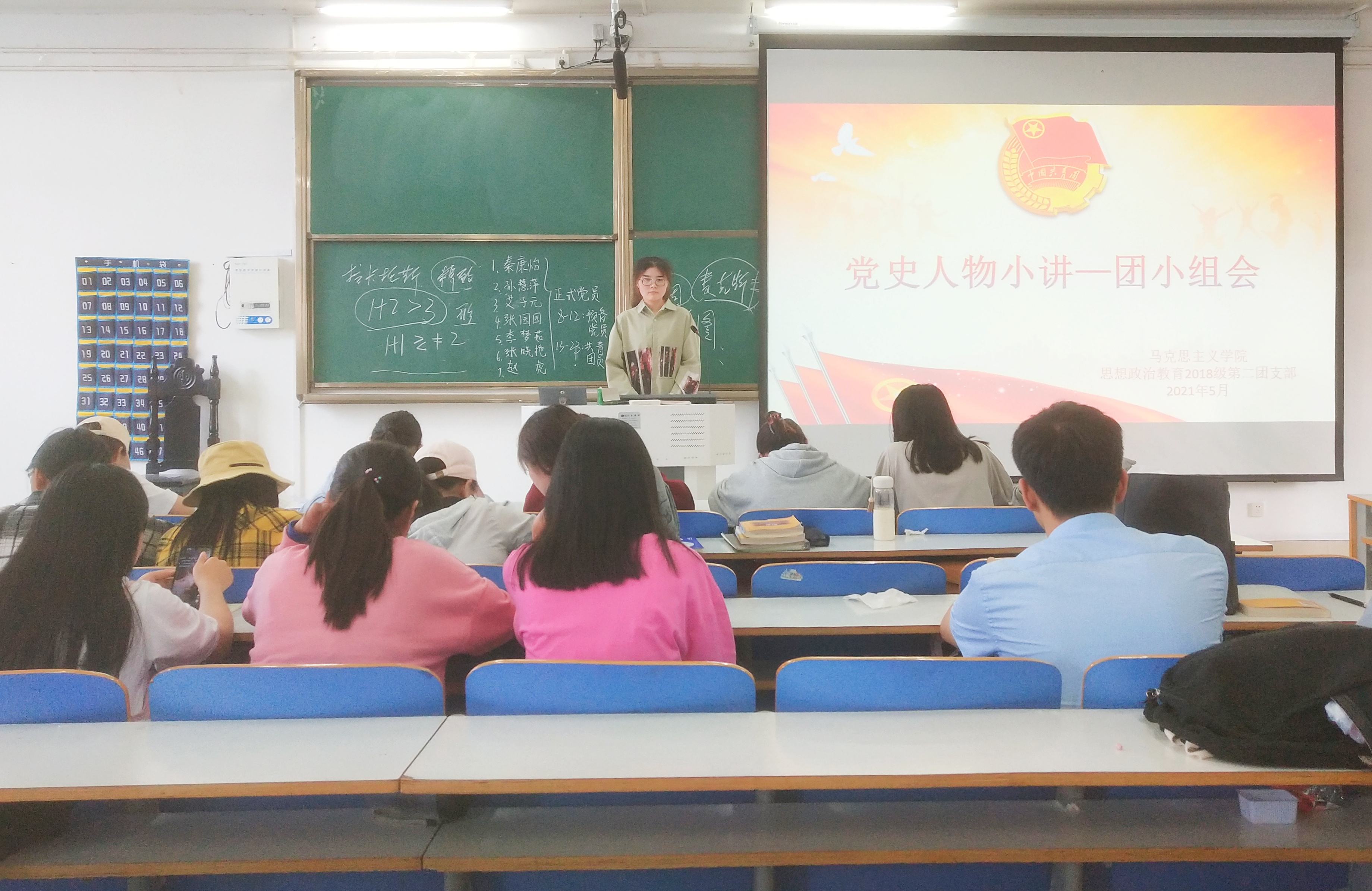 5月19日上午,金年会官网2018级思想政治教育第二团支部第二团小组在社科楼514教室顺利开展主题为“党史人物小讲”团小组会。会议由团小组组长王文慧主持。