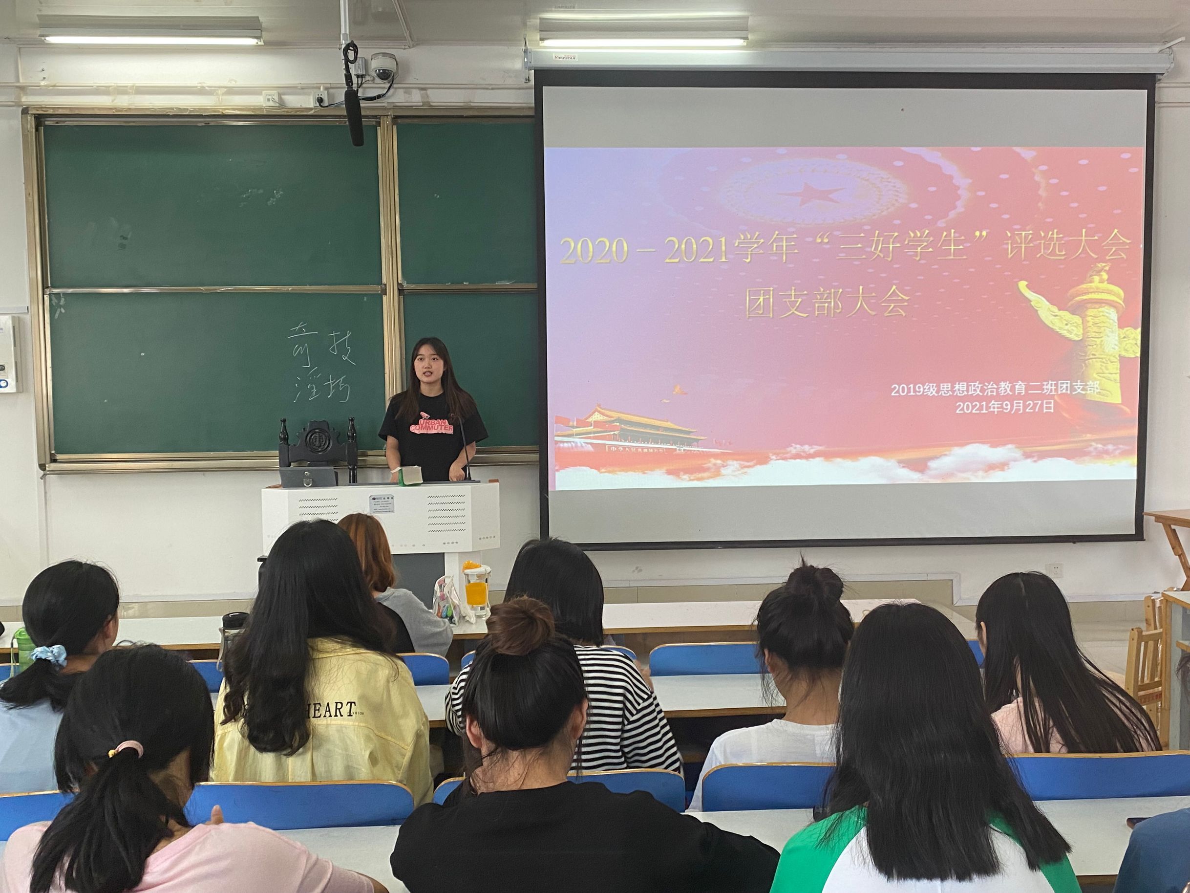 9月27日下午,金年会jinnianhuicom2019级思想政治教育二班团支部2020-2021学年“三好学生”、“优秀班干部”评选活动于社科院514教室顺利开展。2019级思想政治教育二班全体成员共同参与本次会议。本次会议由团支书孙雅娴主持。