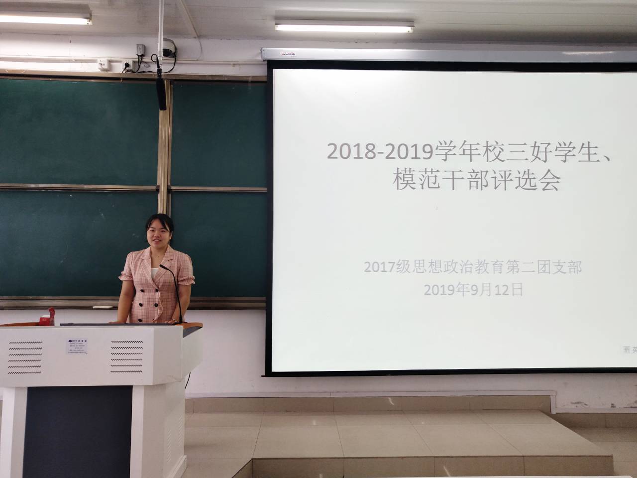 9月12日下午,金年会jinnianhuicom2017级思想政治教育二班在社科楼515教室召开2018年度“三号学生”,“模范干部”评选会议。会议由团支书秦康怡主持。