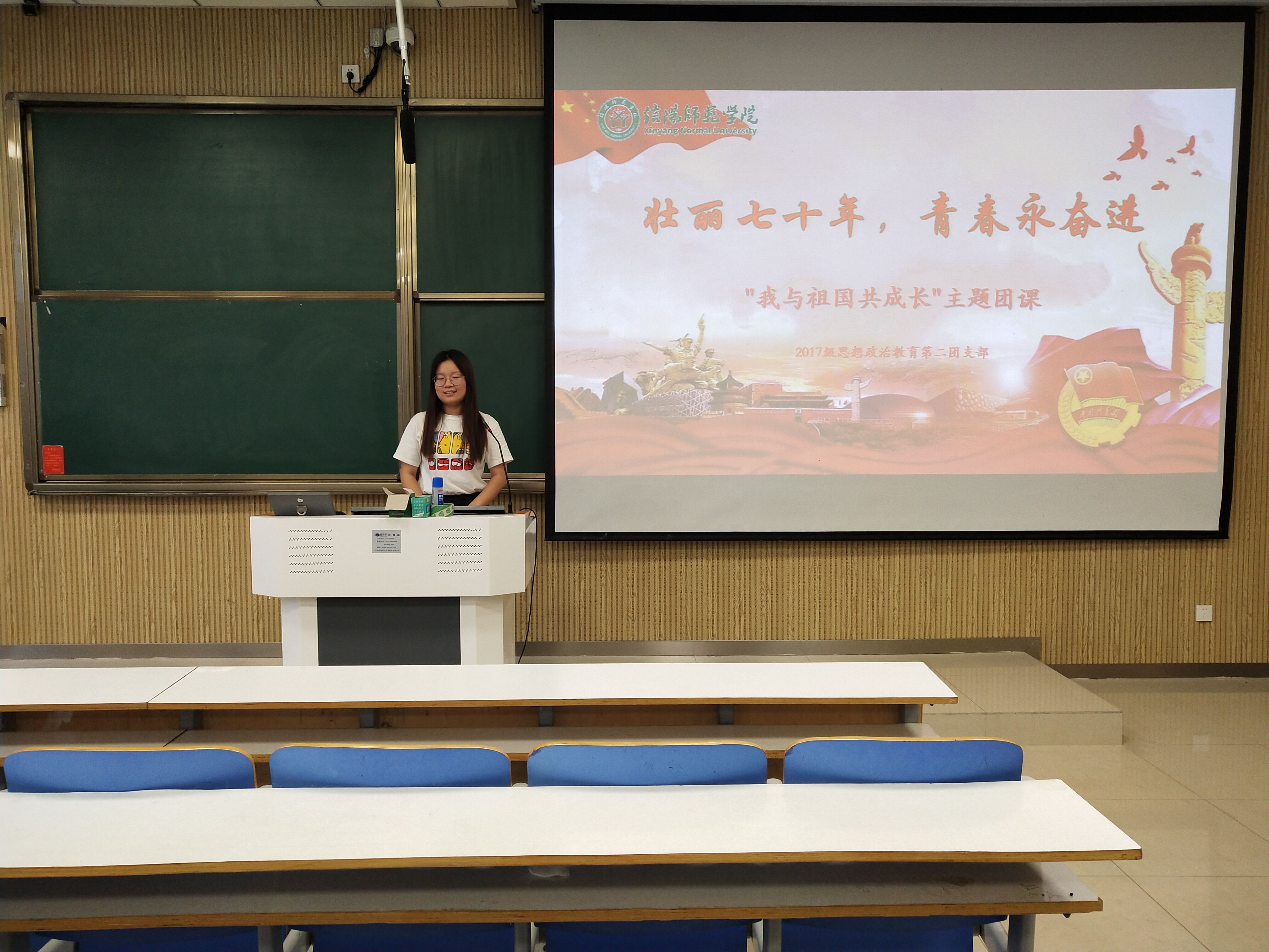 为进一步弘扬爱国主义精神,增强当代大学生的责任感及使命感,9月26日下午,金年会jinnianhuicom2017级第二团支部在社科楼515教室开展“我与祖国共成长”主题团课。2017级第二团支部全体成员参加本次会议,会议由组织委员王泽鑫主持。