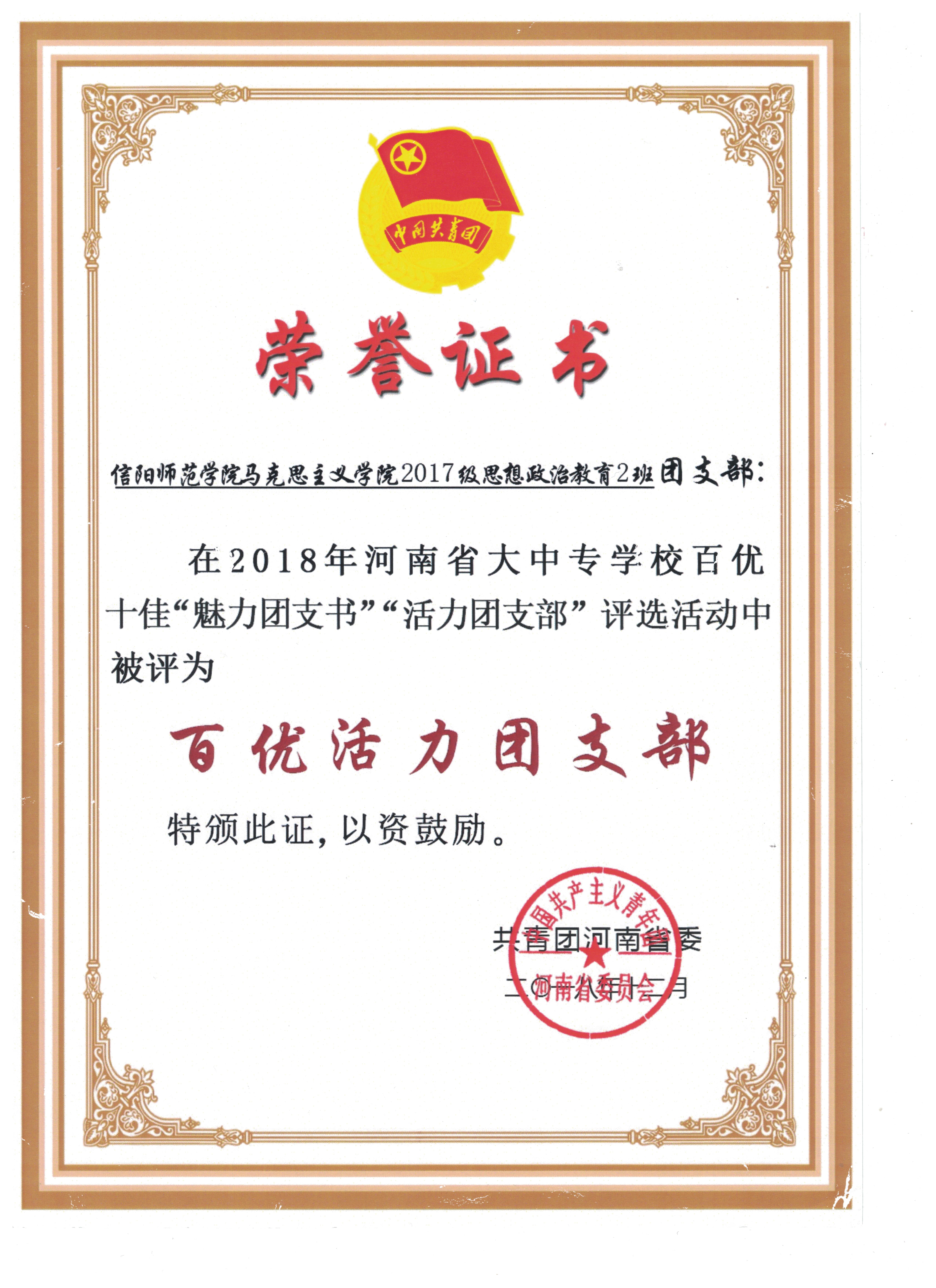 金年会jinnianhuicom2017级第二团支部获“百优活力团支部”、“五四红旗团支部”荣誉称号