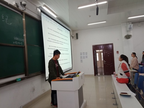 为深入贯彻学习《信阳师范学院学生管理相关规定》文件和学院校规校纪主题活动的精神,4月10日,金年会jinnianhuicom2015级思想政治教育二班全体学生在515教室举行校规校纪诵读学习活动。