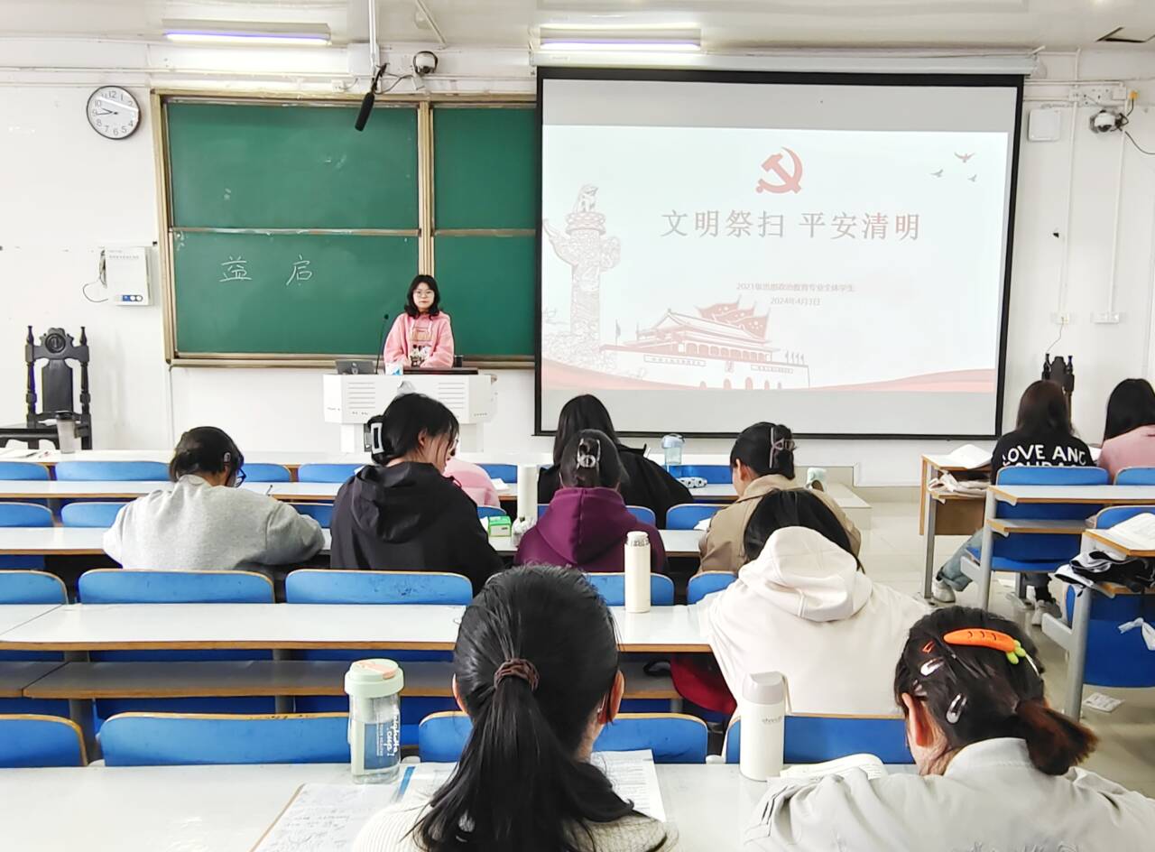 4月3日上午,金年会jinnianhuicom2021级思想政治教育全体学生在社科楼514教室召开“文明祭扫,平安清明”主题班会。金年会jinnianhuicom2021级思想政治教育全体学生参与此次会议。会议由辅导员高小佳主持。