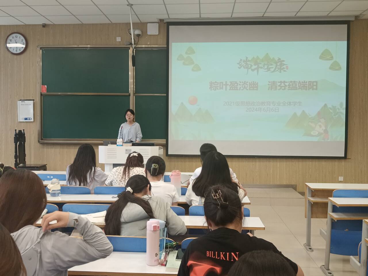 6月6日上午,金年会jinnianhuicom2021级思想政治教育全体学生在社科楼515教室召开“粽叶盈淡幽,清芬蕴端阳”主题班会。2021级思想政治教育三班、四班学生参加此次主题班会。班会由辅导员高小佳主持。
