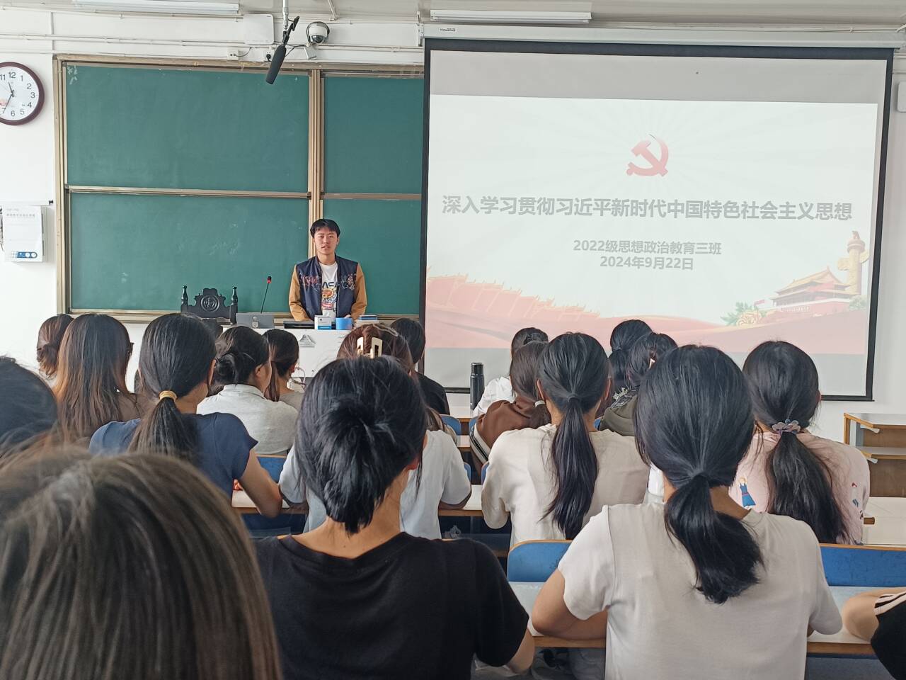 9月22日上午,金年会jinnianhuicom2022级思想政治教育三班在社科楼514教室召开深入学习贯彻习近平新时代中国特色社会主义思想教育主题团课。金年会官网2022级思想政治教育三班全体成员共同参加此次团课。团课由团支书余浩洋主持。