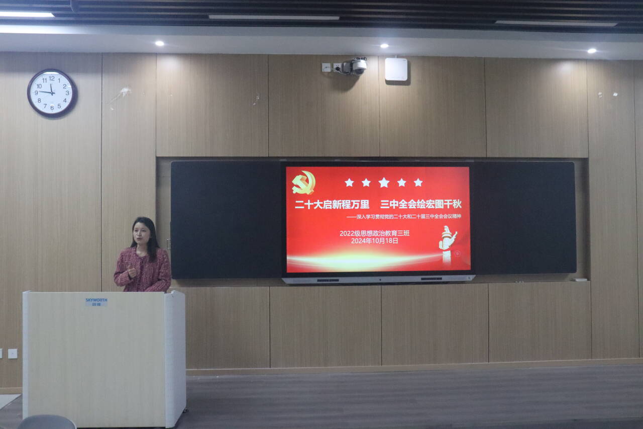 10月18日上午,金年会jinnianhuicom2022级思想政治教育三班在社科楼516教室召开“二十大启新程万里,三中全会绘宏图千秋”主题团课。金年会官网2022级思想政治教育三班班主任任婷和三班全体成员共同参加此次团课。团课由任婷主持。