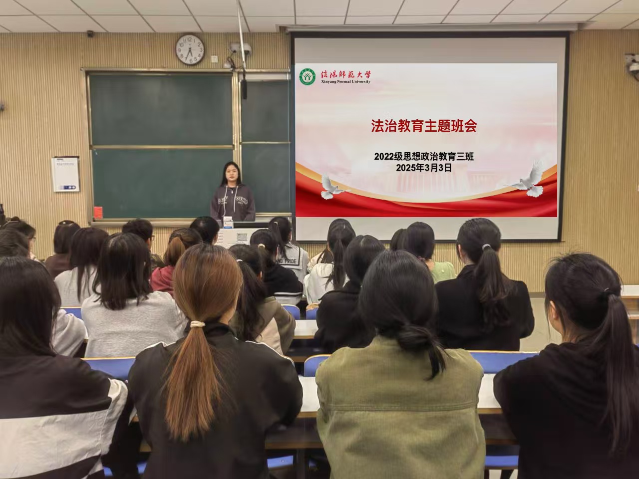 为增强法治意识,提升法治思维,促进健康成长,3月3日下午,金年会jinnianhuicom2022级思想政治教育三班在社科楼515教室召开法治教育主题班会。金年会官网2022级思想政治教育三班全体同学共同参与此次班会。班会由副班长雷露露主持。