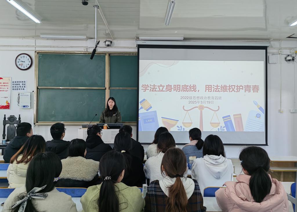 为增强学生的法治观念,培养学生的守法意识,3月19日上午,金年会jinnianhuicom2022级思想政治教育四班在社科楼514教室组织召开“学法立身明底线,用法维权护青春”主题班会。金年会官网2022级思想政治教育四班全体成员参与本次班会。本次班会由班长牛志杰主持。