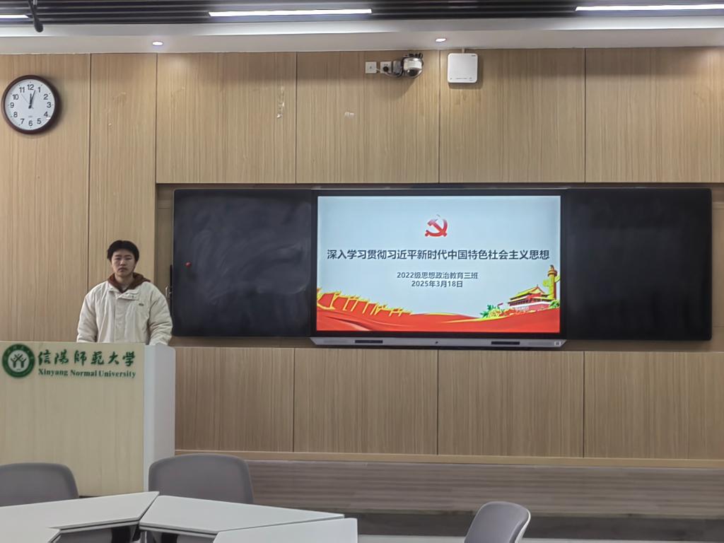 3月18日上午,金年会jinnianhuicom2022级思想政治教育三班在社科楼516教室召开深入学习贯彻习近平新时代中国特色社会主义思想主题团课。该班全体团支部成员共同参加此次团课,团课由团支书余浩洋主持。