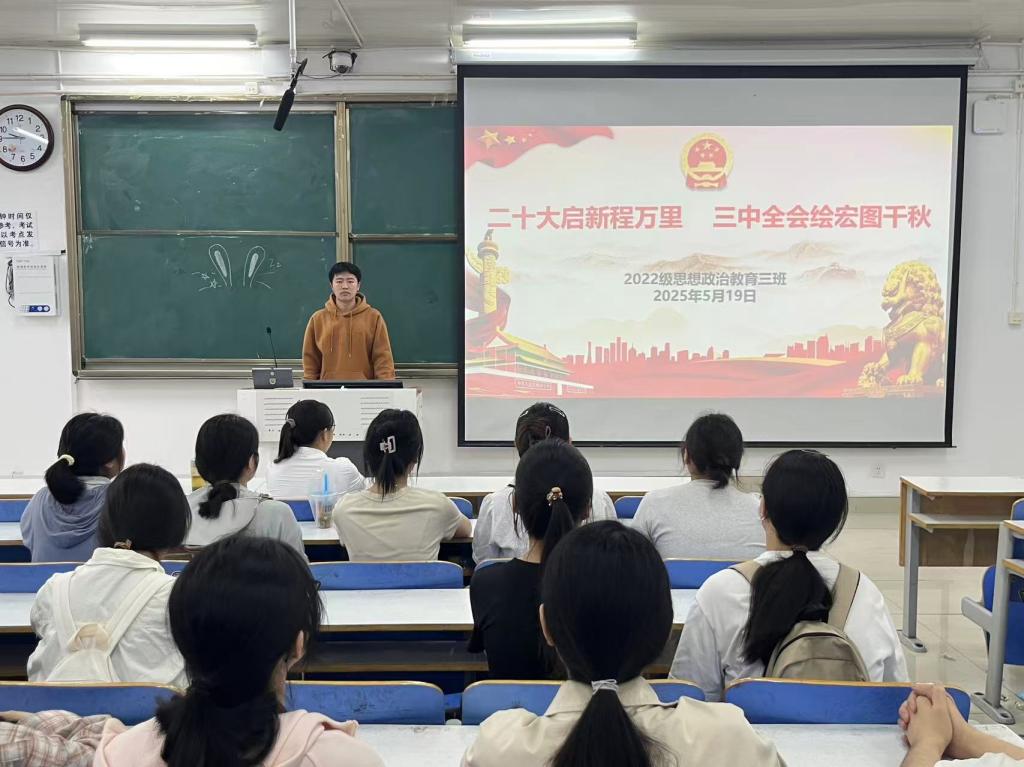 5月19日下午,金年会jinnianhuicom2022级思想政治教育三班在社科楼514教室召开“二十大启新程万里,三中全会绘宏图千秋”主题团课。金年会官网2022级思想政治教育三班全体成员共同参加本次团课,团课由团支书余浩洋主持。